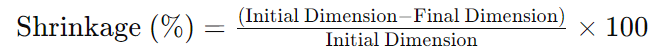 The shrinkage percentage is calculated using the formula:
